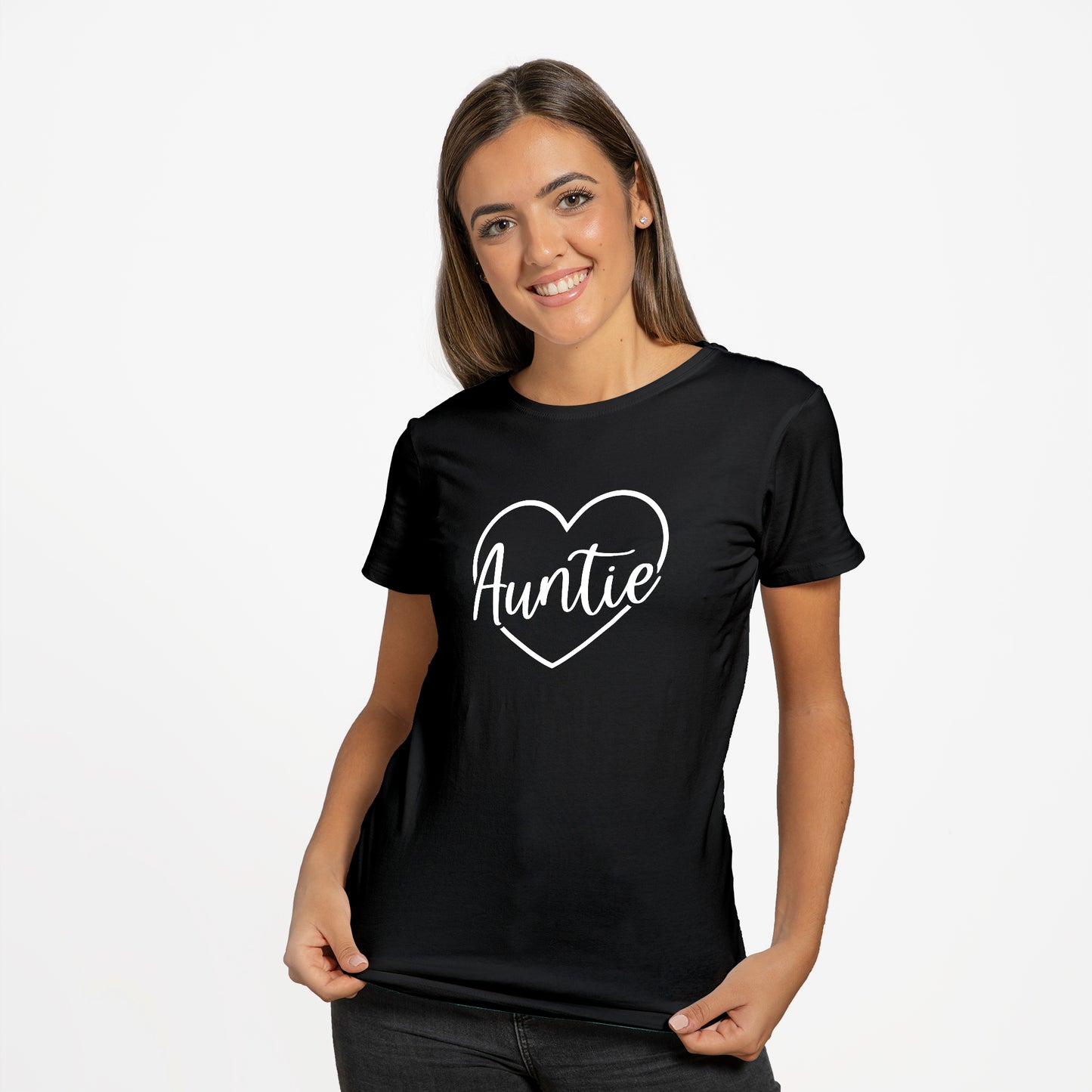 Featuring the witty wording "Auntie" in bold white letters against a sleek black background, this T-Shirt is sure to grab attention and spark conversations.
