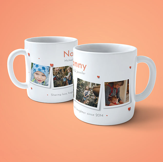 Create a special memory for your loved one with our Personalised Photo Mug of Nanny. This elegant mug features a charming Nanny Polaroid design, making it the perfect gift for any occasion. Personalize it with your favorite photo, and watch their face light up with joy every time they use it. Stay connected with your Nanny, even when you can't be there.