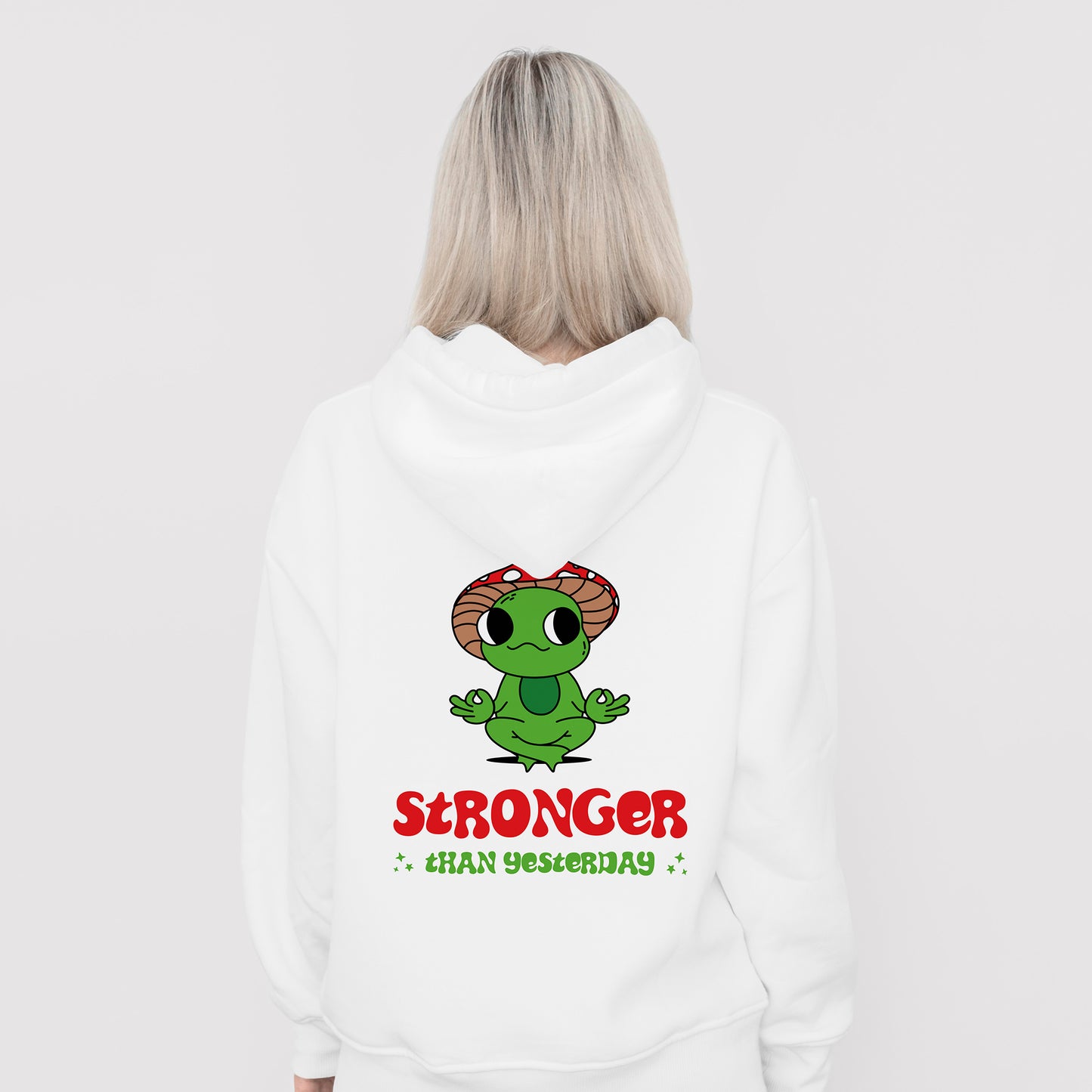 Stay positive and motivated with our Stronger Than Yesterday frog hoodie. Embrace mental health and spread positivity while staying cozy in our soft hoodie. Because your well-being matters!